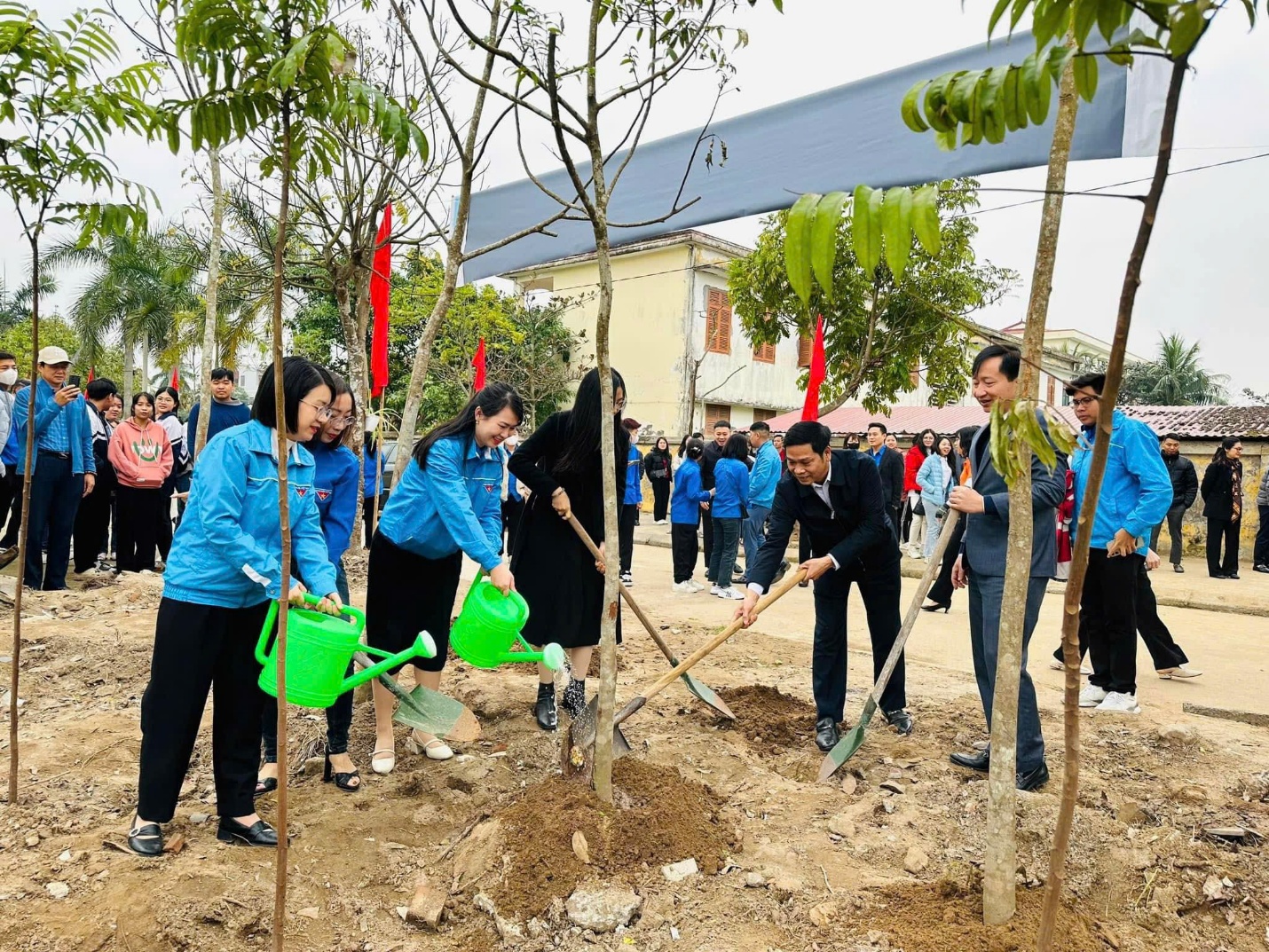 Hưởng ứng ngày cao điểm “Tuổi trẻ Hải Phòng chung tay xây dựng nông thôn mới, nông thôn mới kiểu mẫu” năm 2024, BTV Quận đoàn chỉ đao Đoàn phường Tân Thành tổ chức hoạt động trồng và chăm sóc cây xanh tại tuyến đường Tân Tiến.