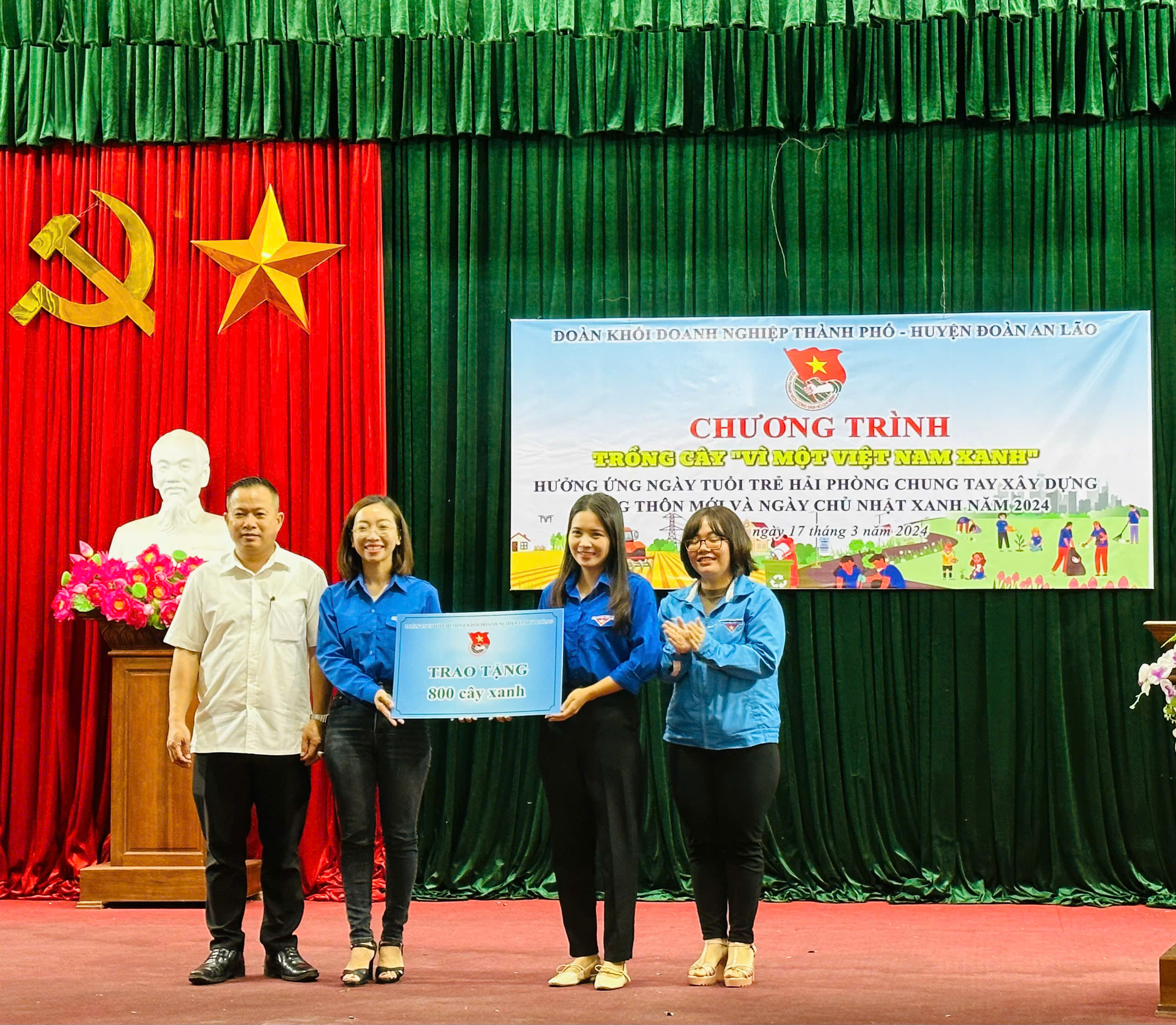 Trồng mới tuyến đường cây thanh niên tại các xã Quốc Tuấn, Tân Viên, Mỹ Đức (Đoàn khối các cơ quan thành phố trao tặng 150 cây Bàng Đài Loan cho 3 xã) Hỗ trợ học sinh có hoàn cảnh khó khăn (Đoàn Thanh niên - Hội sinh viên trường ĐH Y dược HP hỗ trợ em Nguyễn Thanh Tùng, lớp 6C, trường THCS Quốc Tuấn kinh phí 3 triệu đồng)