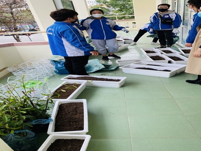 ĐTN cao đẳng giao thông vận tải TW2 dọn dẹp vệ sinh trồng cây xung quanh môi trường biển