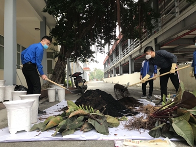 ĐTN trường cao đẳng Bách Nghệ trồng cây hưởng ứng ngày chủ nhật xanh