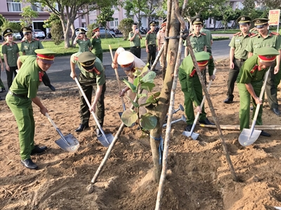Đoàn thanh niên Công an thành phố ra quân trồng cây hưởng ứng Ngày chủ nhật xanh lần II năm 2023