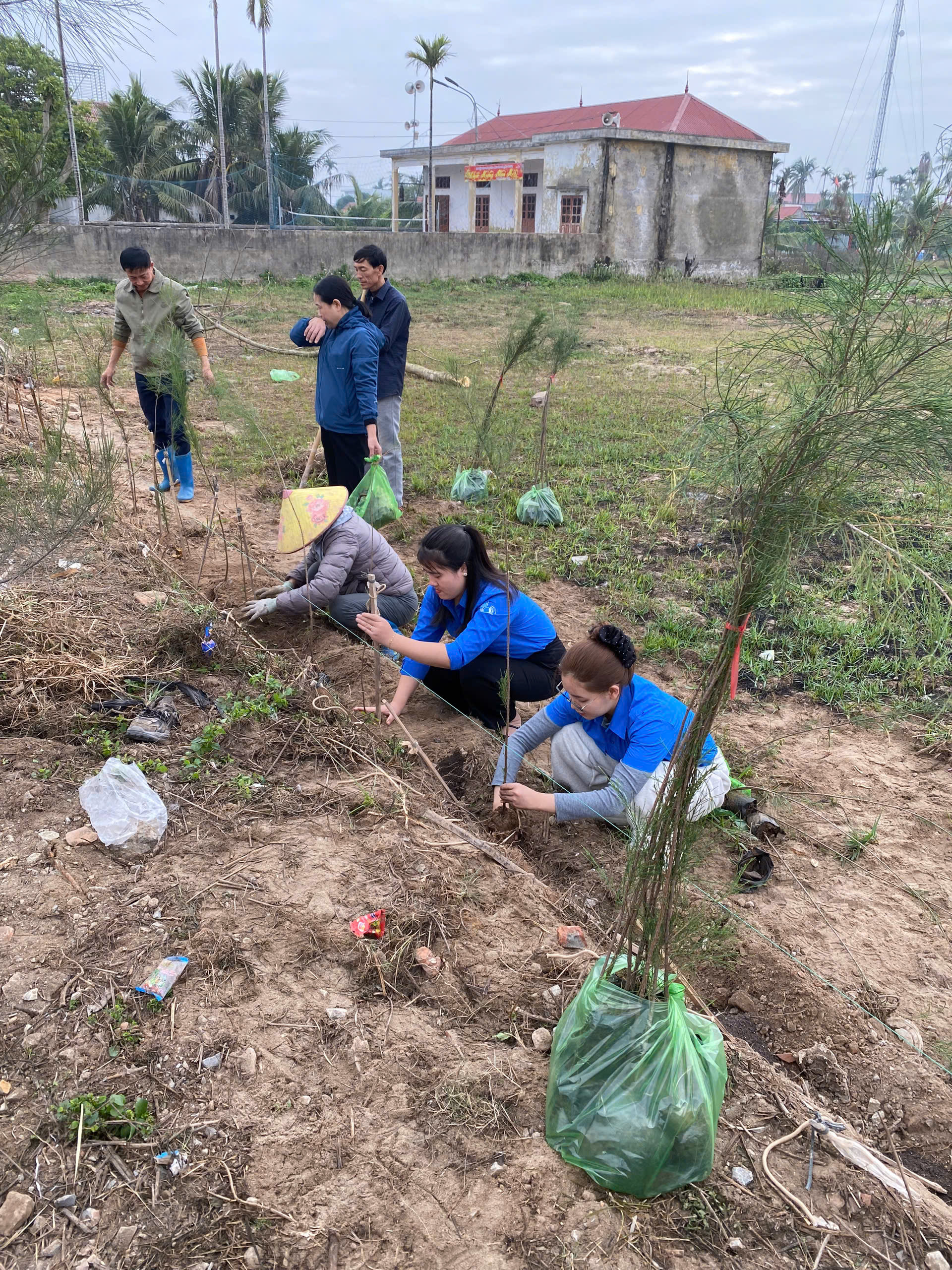 Thực hiện Chương trình Công tác Đoàn và phong trào Thanh thiếu nhi năm 2025, Đoàn xã Kiến Thiết tổ chức trồng 500 cây Phi Lao.