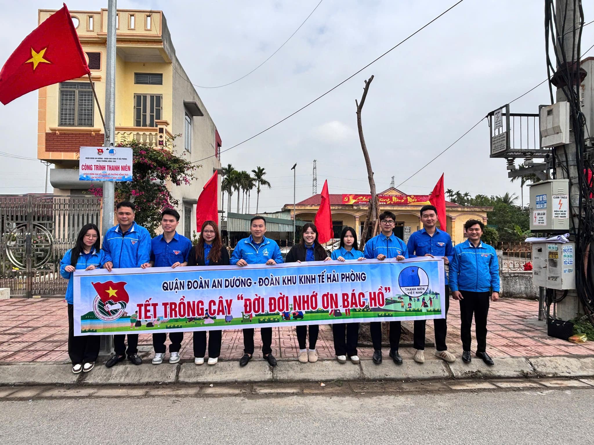 Hưởng ứng lời kêu gọi “Tết trồng cây đời đời nhớ ơn Bác Hồ” và chào mừng năm mới, Quận đoàn An Dương phối hợp cùng Đoàn Thanh niên Khu Kinh tế Hải Phòng tổ chức chương trình Tết trồng cây tại tổ dân phố Hy Tái, phường Hồng Thái, quận An Dương, thành phố Hải Phòng.