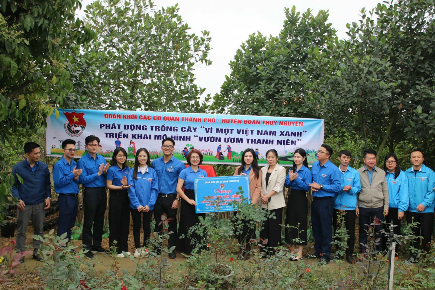 Đ/c Nguyễn Thị Thanh Phương - Phó Bí thư Đoàn khối các cơ quan thành phố đã trao tặng 1000 cây kèn hồng cho Huyện đoàn Thuỷ Nguyên. Nhằm hưởng ứng Chương trình “Vì một Việt Nam xanh” giai đoạn 2021 - 2025 thực hiện Đề án “Trồng một tỷ cây xanh giai đoạn 2021 - 2025” của Thủ tướng Chính phủ Cũng đã khánh thành một công trình đầy ý nghĩa - "Vườn ươm thanh niên". Đây là không gian xanh được thanh thiếu niên tự tay xây dựng, không chỉ là nơi trồng cây mà còn là điểm đến lý tưởng cho các hoạt động tình nguyện và giáo dục môi trường.